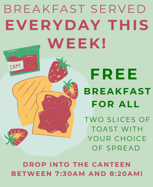 We are delighted to announce an exciting change to our breakfast service. To ensure every student starts their day with the energy they need to succeed, we are expanding our provision: for the first two weeks in January, breakfast will be completely free for every student, every school day.