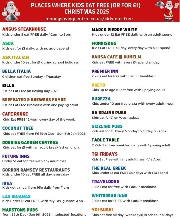 Kids eat free this Christmas