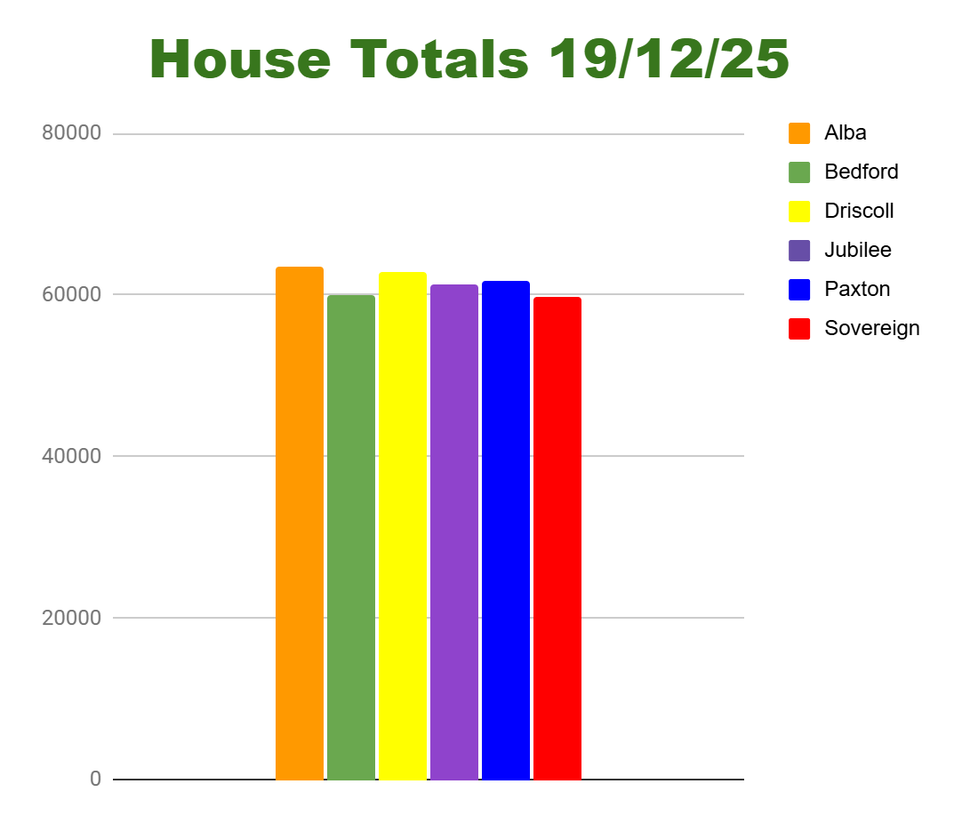 This was also a house competition. Well done to Jubilee who were convincing winners with nearly 300 more than Paxton in 2nd place (and Driscoll were 3rd).