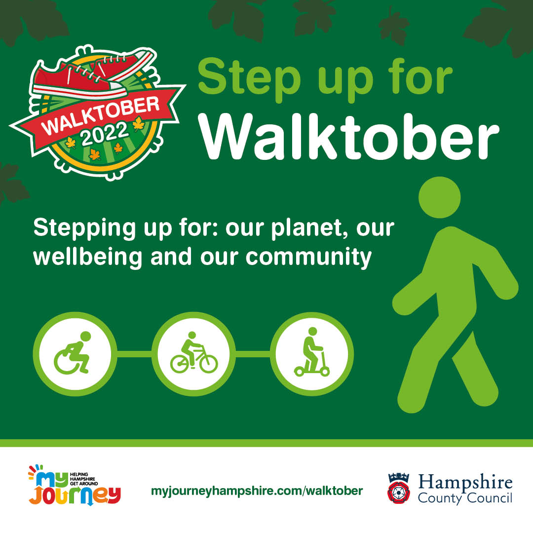 Hampshire County Council are asking students to make an active travel pledge and show how they are Stepping Up for Walktober by recording their active travel choices using the Walktober Challenge Card. There are lots of actions they could include - walking/wheeling to school, scooting to the park, cycling to a local shop, using Park and Stride, taking a bus instead of the car on a day trip - these choices make a big difference!