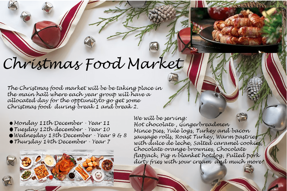 With the Christmas food festival happening next week Monday - Thursday please make sure your child has enough money on their accounts ready for their set days as explained here.