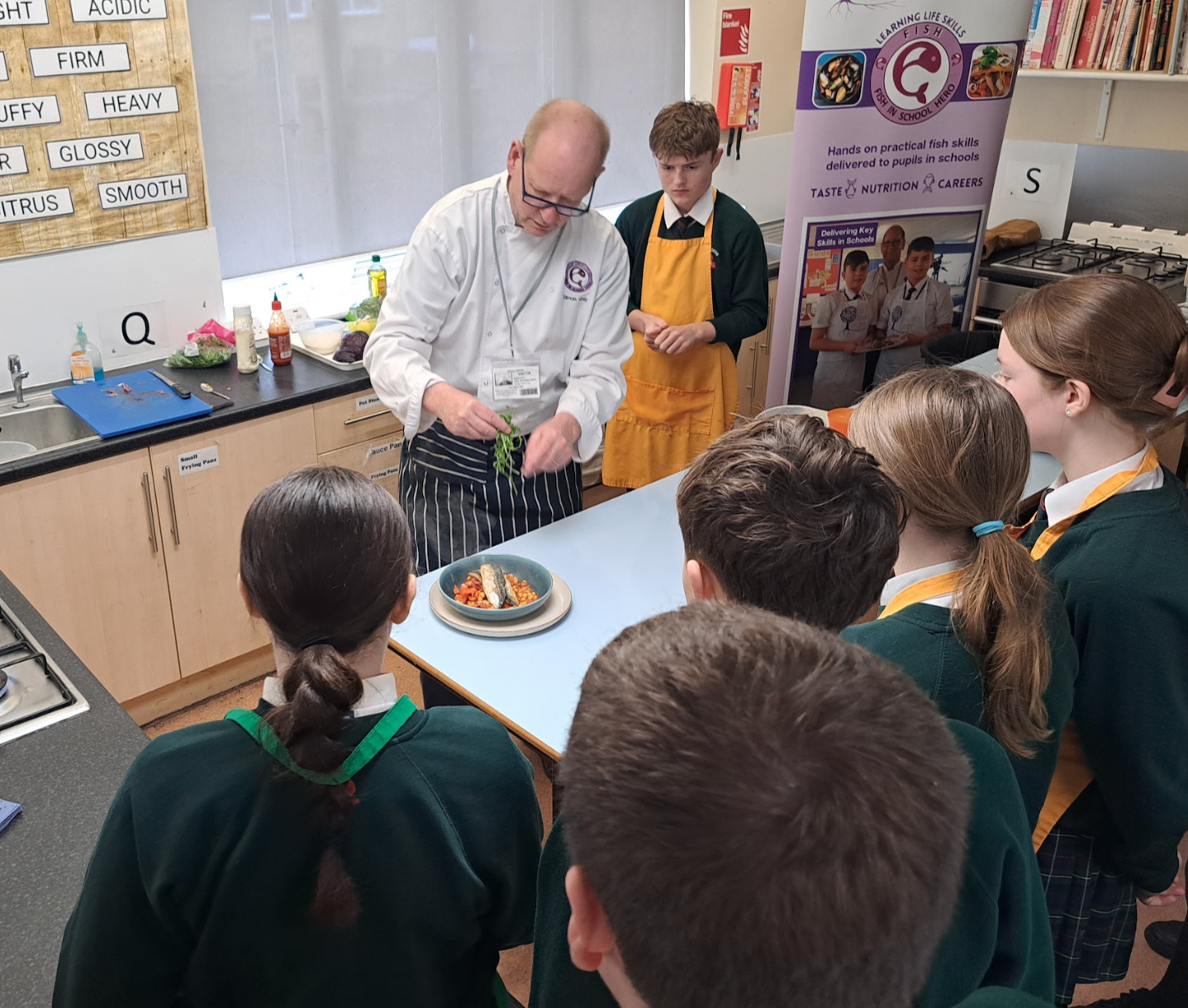 Last Friday, 15 of our Year 7, 9, and 10 students took part in The Fish Heroes Masterclass, led by Simon from The Food Teachers Centre. The masterclass included informative cooking demos, insights into sustainable fish, and a hands-on recipe for Pan Fried Mackerel with Chickpea & Chorizo sauce.