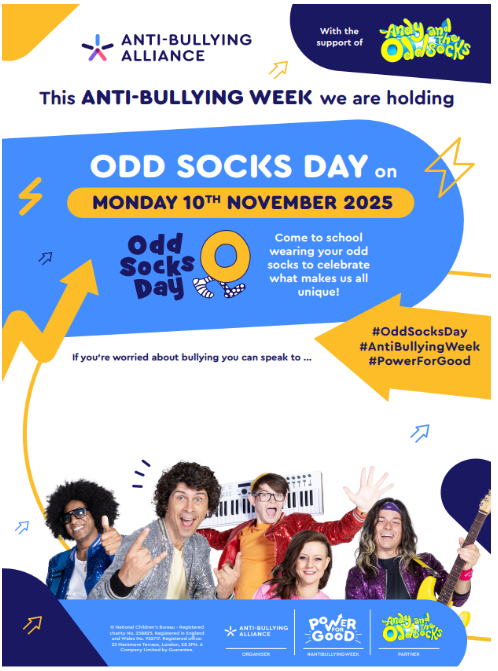 - Odd Socks Day!: On Monday 10th November, we encourage everyone, students and staff, to wear odd socks! This simple, colourful act celebrates what makes us all unique and is a fun way to promote Respect for individuality.