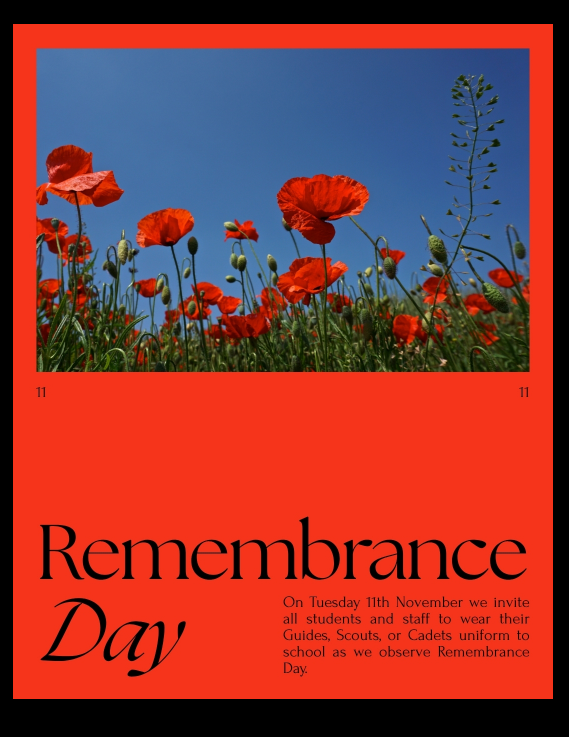 Tuesday 11 November - Remembrance Day