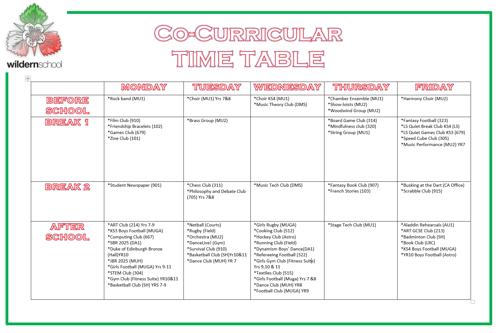 See the huge variety of clubs that are on offer this half term! Sign up for these using the Clubs tab on Edulink.