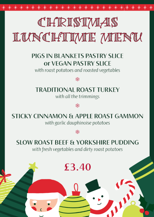 This will be served as part of our Christmas Festival, taking place for all year groups in the last week of term.